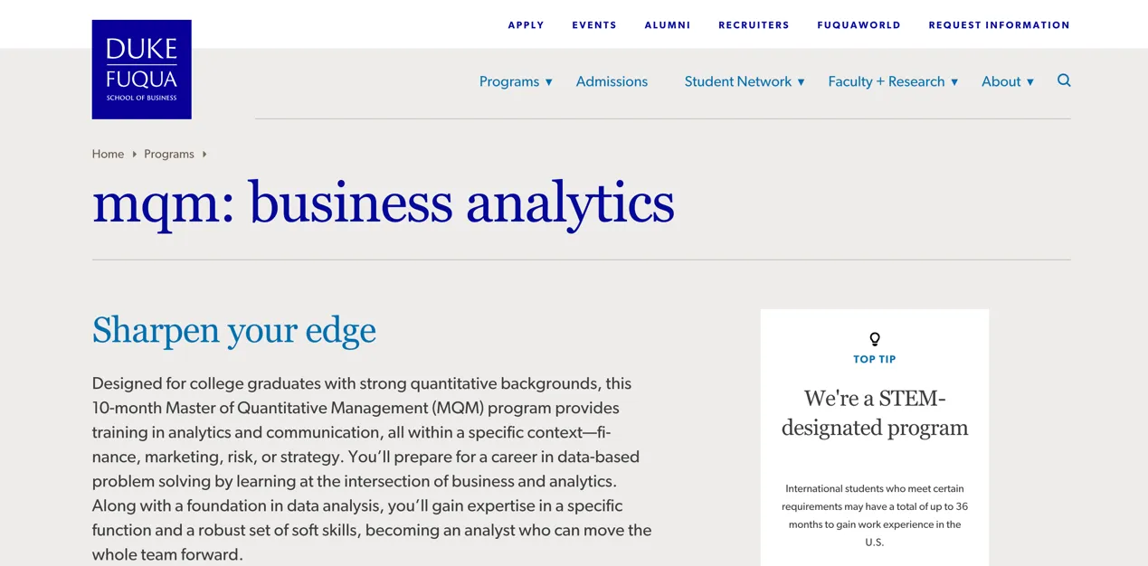官网链接:https://www.fuqua.duke.edu/programs/mqm-business-analytics