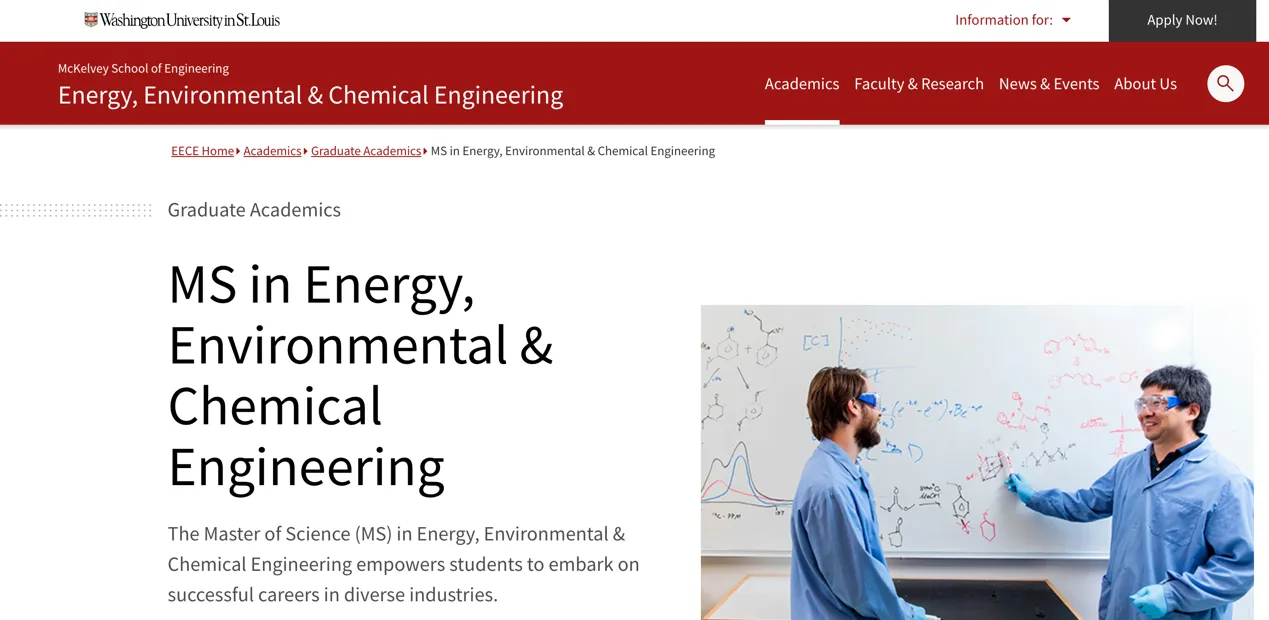 圣路易斯华盛顿大学WUSTL – 能源、环境与化学工程(Energy, Environmental & Chemical Engineering)