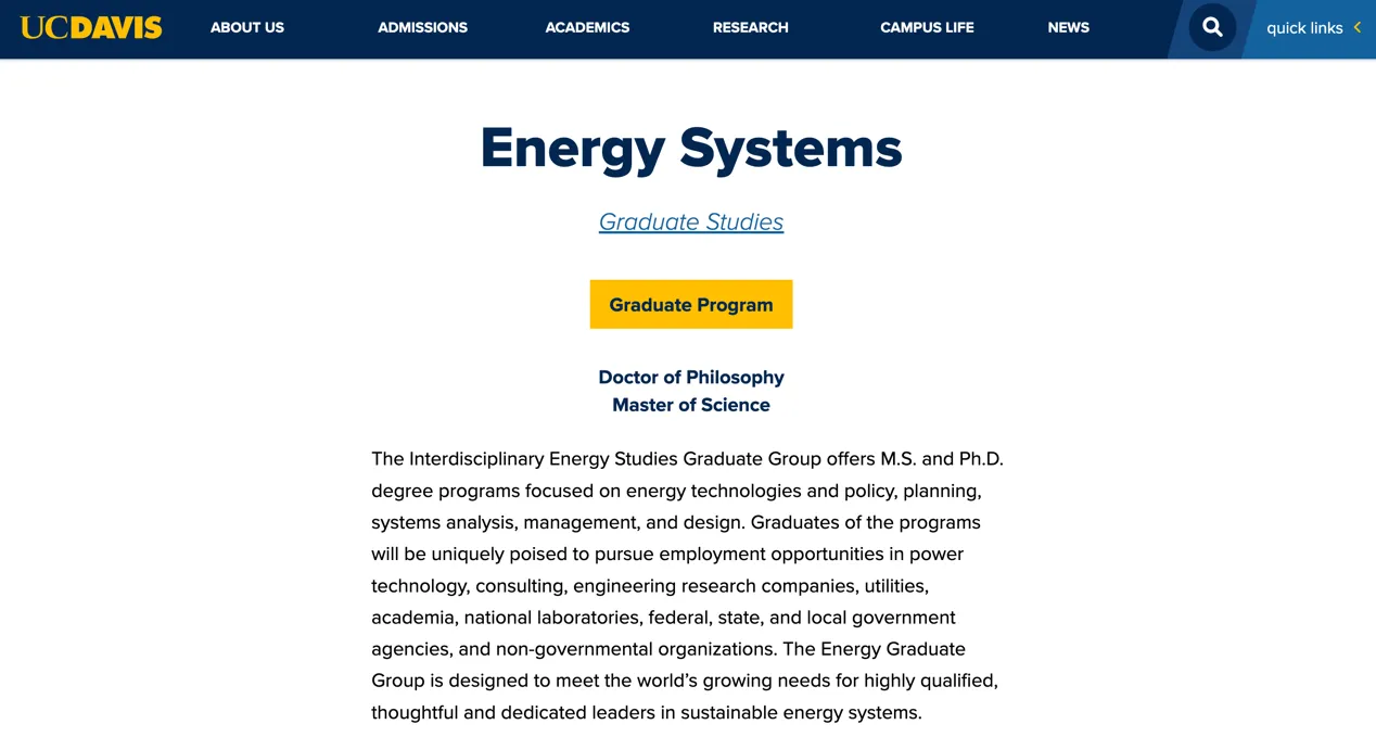 官网链接:https://www.ucdavis.edu/graduate-programs/energy-systems
