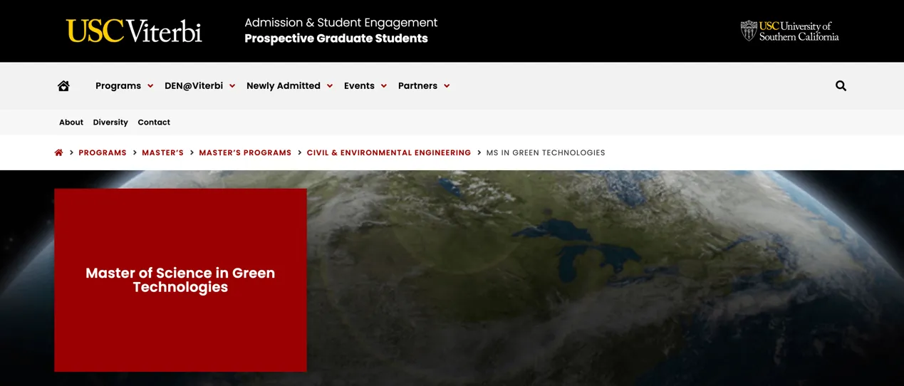 官网链接:https://viterbigradadmission.usc.edu/programs/masters/msprograms/civil-environmental-engineering/ms-green-tech/