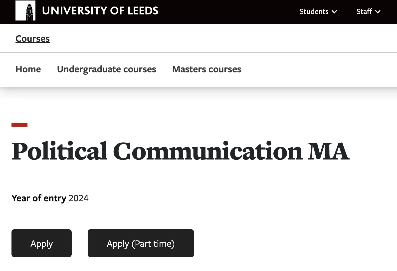 官网链接:https://courses.leeds.ac.uk/a920/political-communication-ma