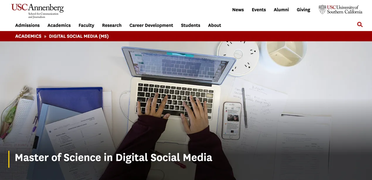官网链接:https://annenberg.usc.edu/academics/digital-social-media-ms