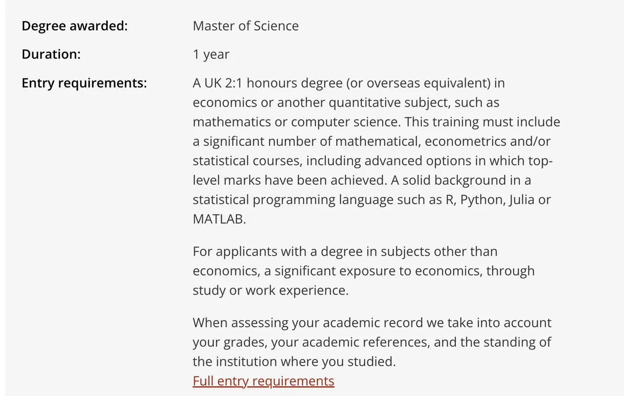 英国 2:1 经济学或其他定量学科(例如数学或计算机科学)荣誉学位(或海外同等学历)。