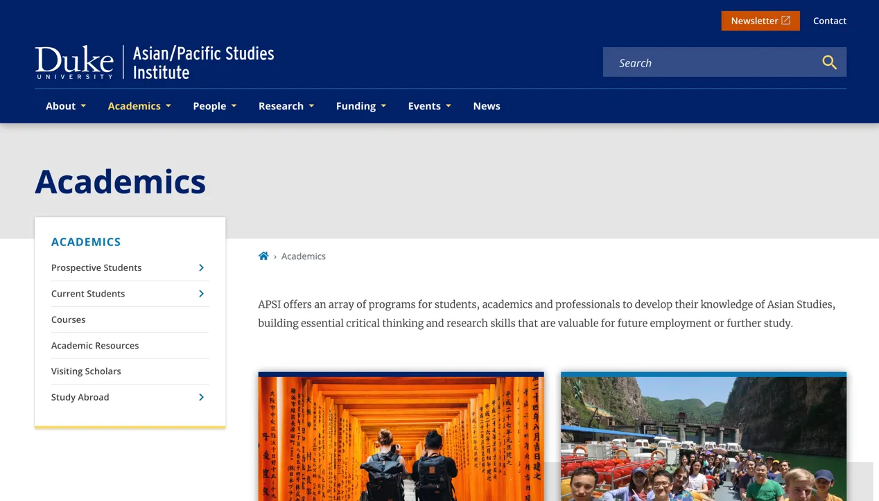 杜克大学则是将两类项目合并在一起称为East Asian Studies,然后在项目内分两个track,杜克大学亚洲研究中心APSI也是研究东亚的重要基地。