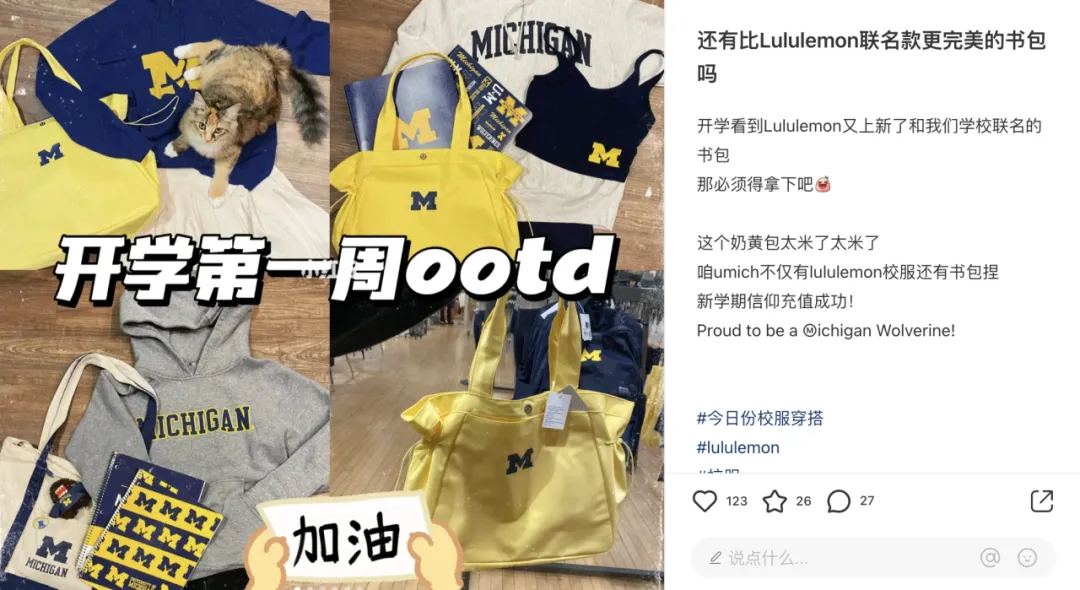 UMich不仅有lululemon校服还有书包,主打一波信仰充值。