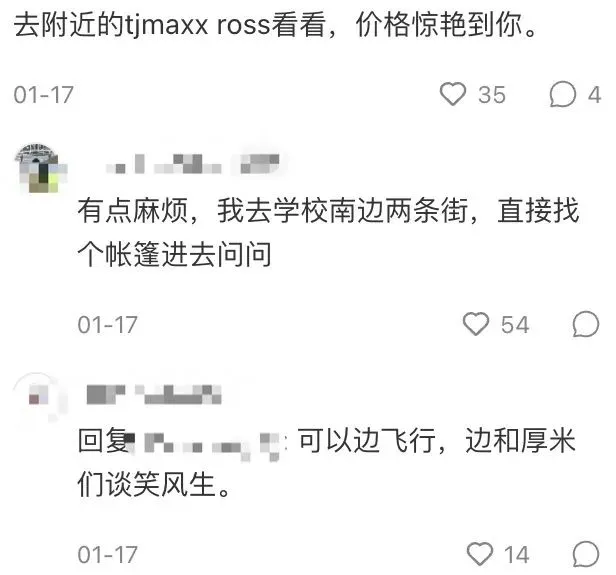 网友支招:或许可以去旁边的tjmaxx ross看看,价格有惊喜。或者随便进个帐篷问问homeless也可。