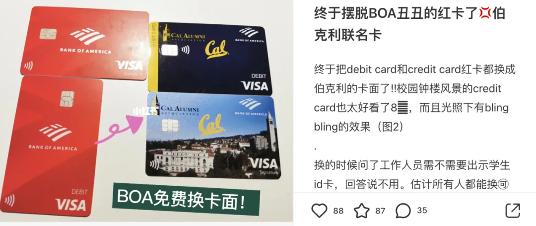 UC Berkeley也出了BOA联名卡,卡面是学校风景👇