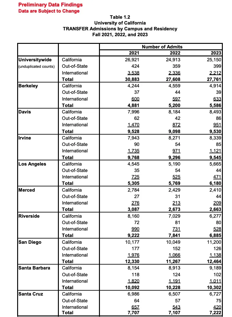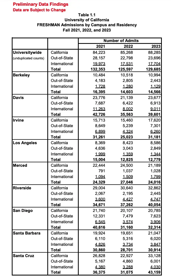 UC Admission官网更新了2023秋季申请季新生/转学录取数据。