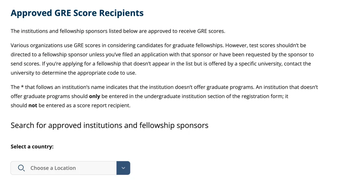 大家送分前,也要提前准备好申请学校院系的送分代码,避免送错学校机构。具体大学院系的代码可以在ETS官网查询: