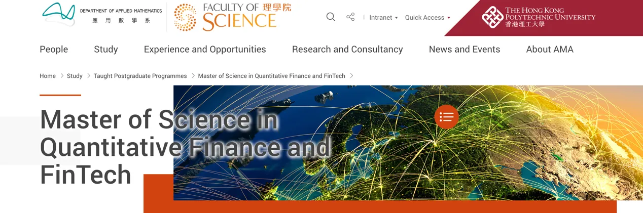 官网链接:https://www.polyu.edu.hk/ama/study/pg/master-quantitative-finance-and-fintech/