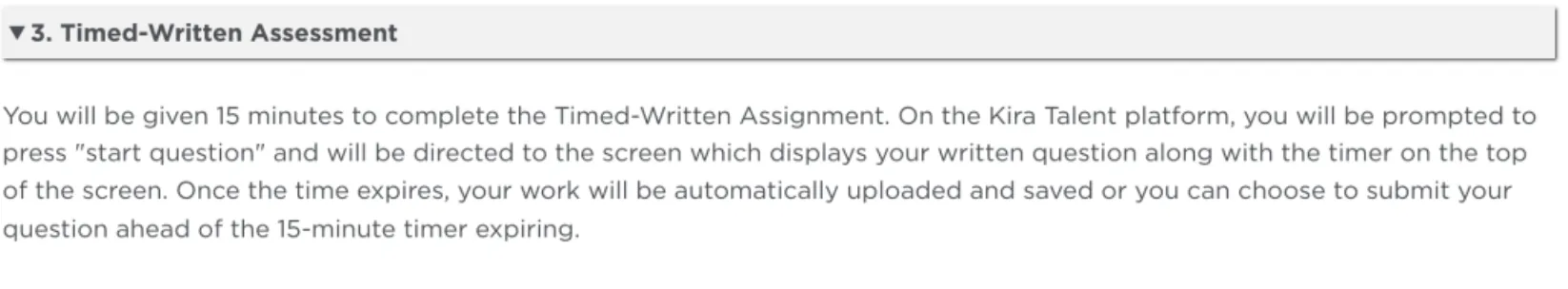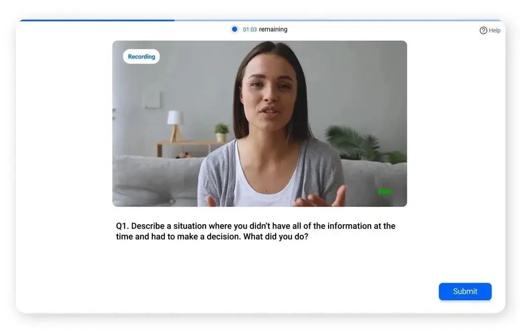 Kira其实有点像托福口语,全程由系统以视频或者文本的形式显示问题,申请者回答问题过程中会全程录像,之后会被统一审核。