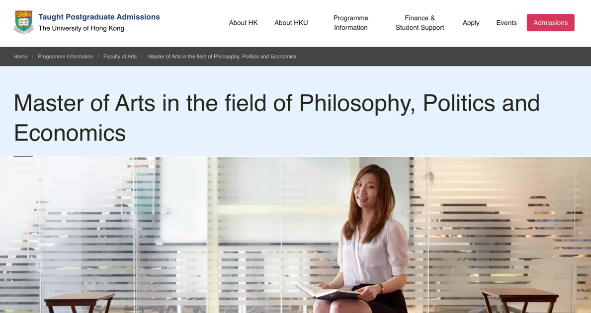 香港大学的文学院为24Fall的同学们开设了新项目——MA in the field of Philosophy, Politics and Economics,今天清柚来为大家介绍一下这个项目的详细信息。