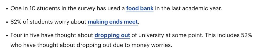 去年的一份调研数据显示,高达80%的英国学生曾考虑过退学,超过半数人将此归咎于经济因素。