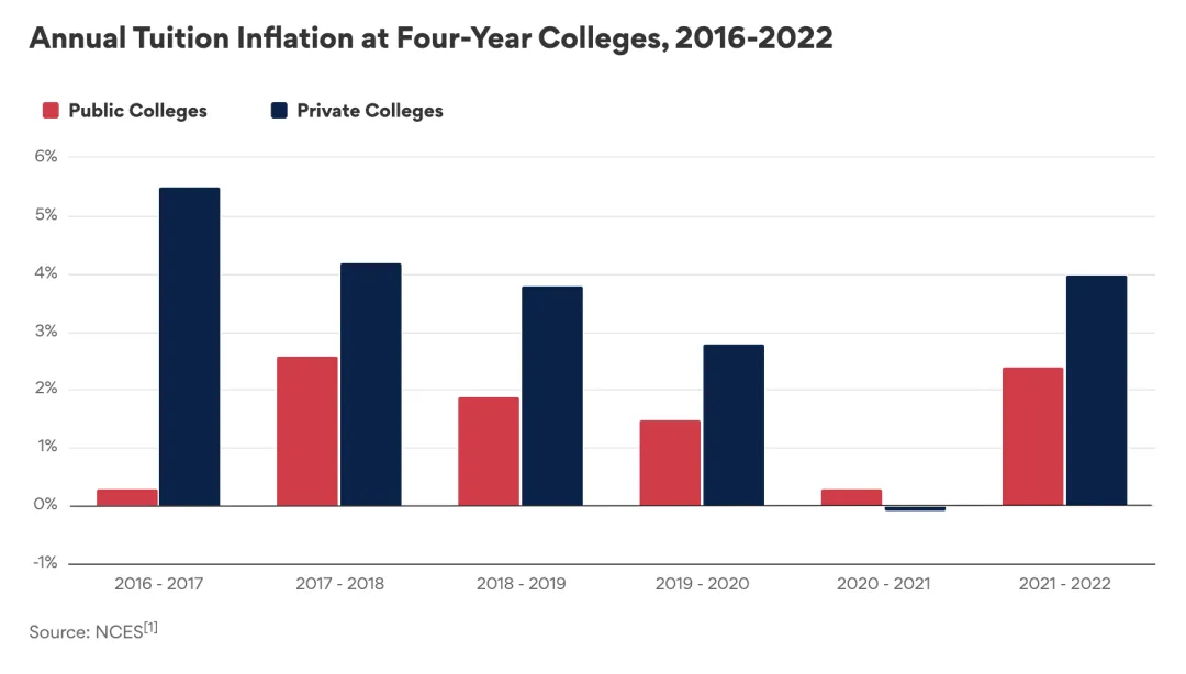 NCES的数据显示,四年制美本的学费基本保持每年3%的增长,私立大学更甚。