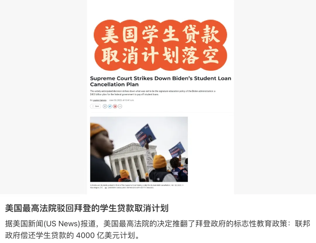 雪上加霜的是,今年6月美国最高法院驳回了拜登的学生贷款取消偿还计划。