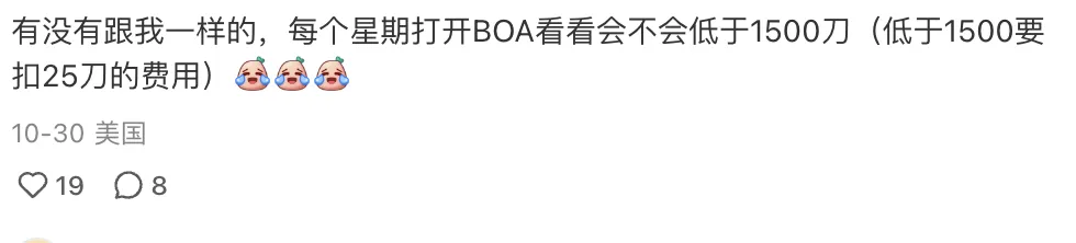 虽然还没拿到绿卡,但已经学会了老美的live paycheck to paycheck,每个月还要被银行charge个穷费。