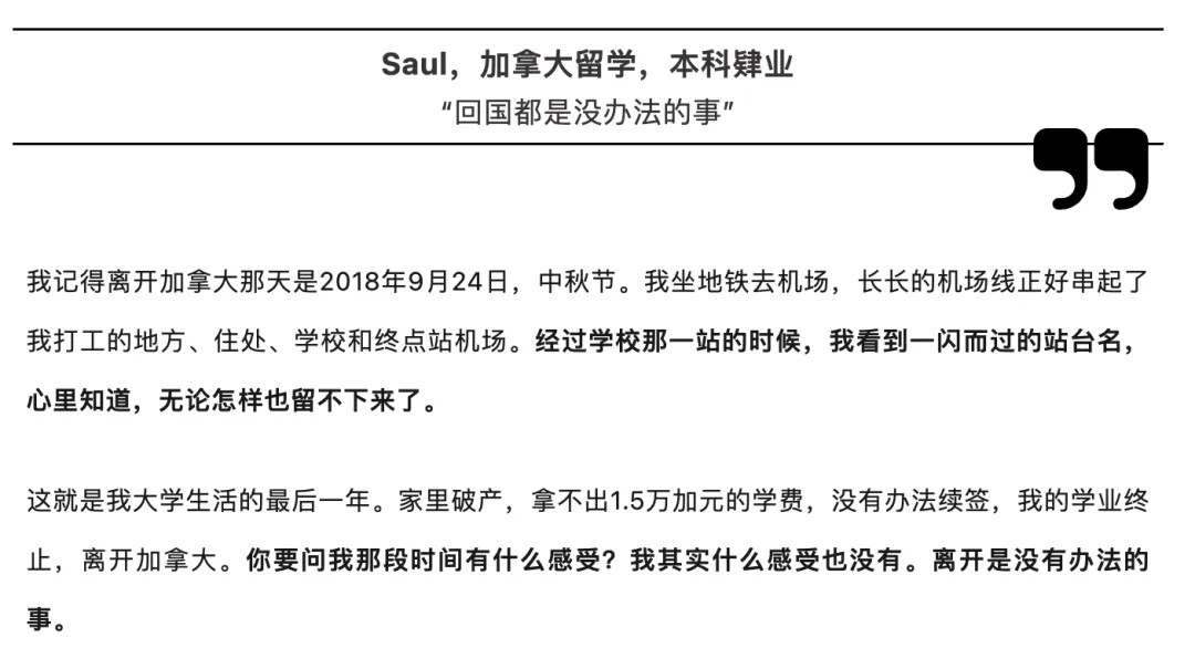 更多的人,在努力之后依然看不到希望的情况下,只能选择肆业回国。
