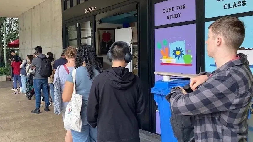在昆士兰大学,前来领取免费晚餐的学生是去年的三倍,每周都约有2,000名学生排起长队。