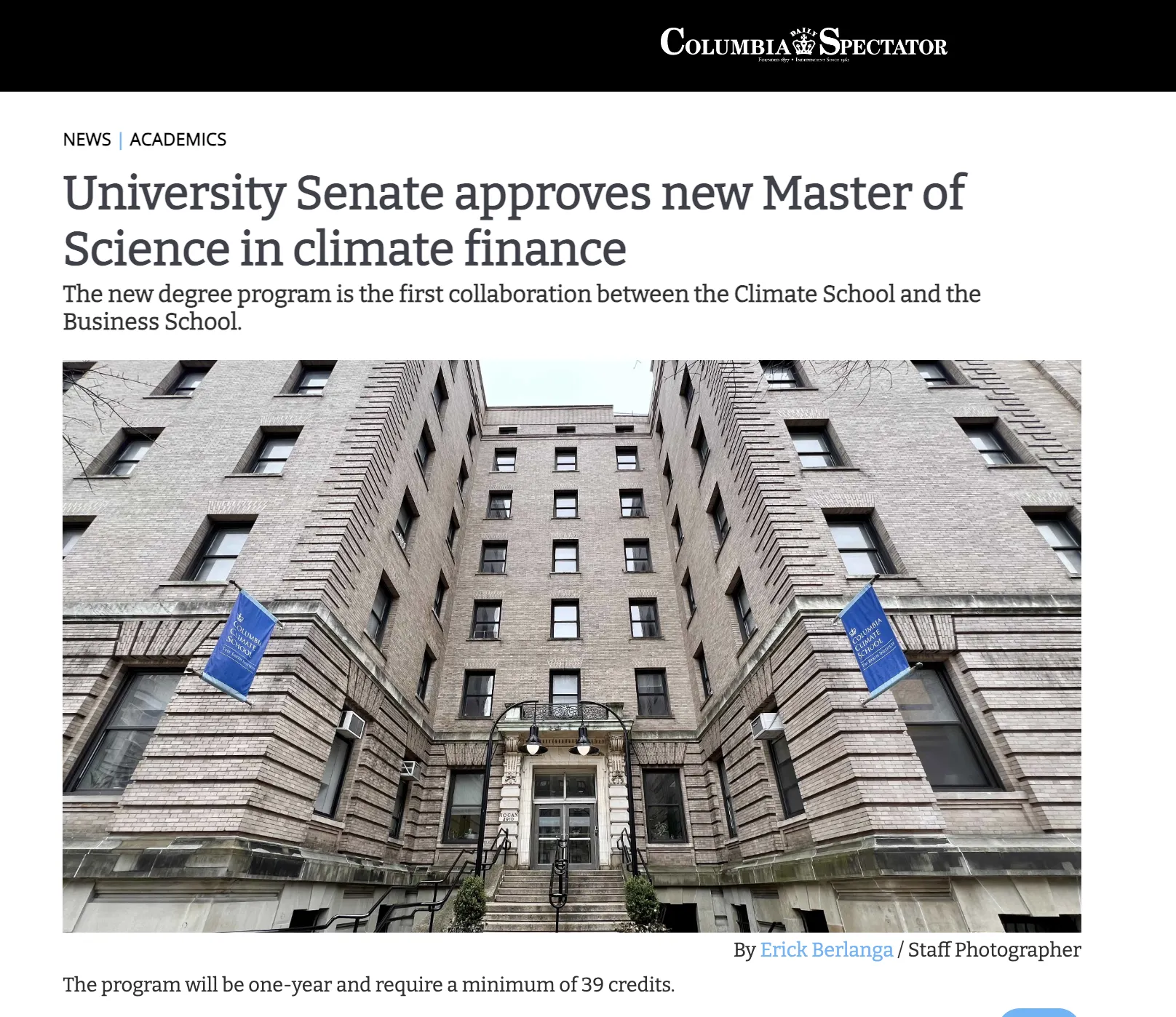 哥伦比亚大学气候学院和商学院联手推出全新专业——气候金融理学硕士(Master of Science in Climate Finance)。该项目是一个专注于培养未来气候变化解决方案金融专家的跨学科课程,结合了环境科学、经济学、金融学和政策分析,是一个一年制的全日制课程。首批招生将于2025年秋季开始,申请通道预计在2024年9月开放。想要了解项目详细情况以及更多申研相关问题也可以扫描下方二维码进行一对一咨询。