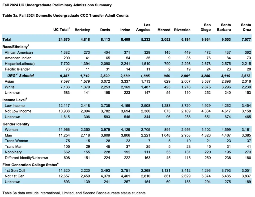 UC加州大学系统近日官方更新了2024秋季申请季新生/转学录取数据。
