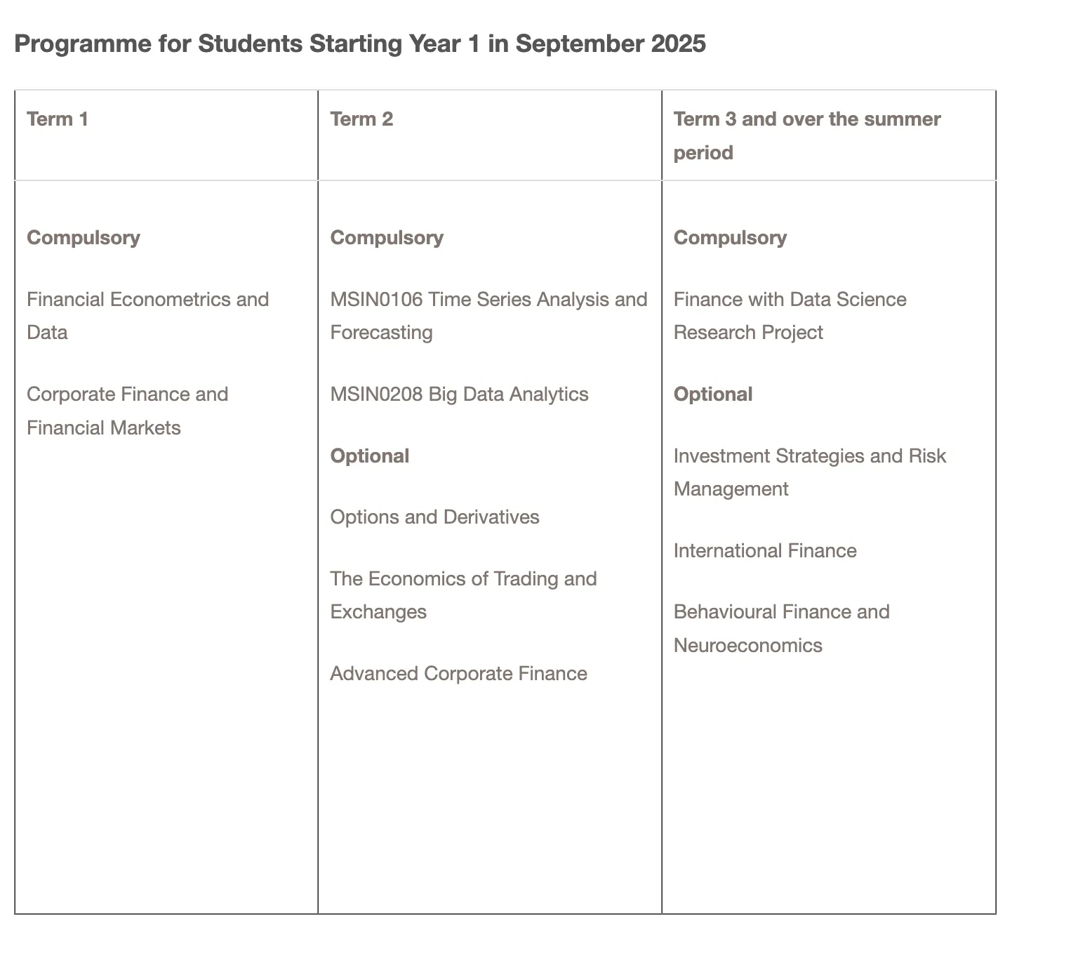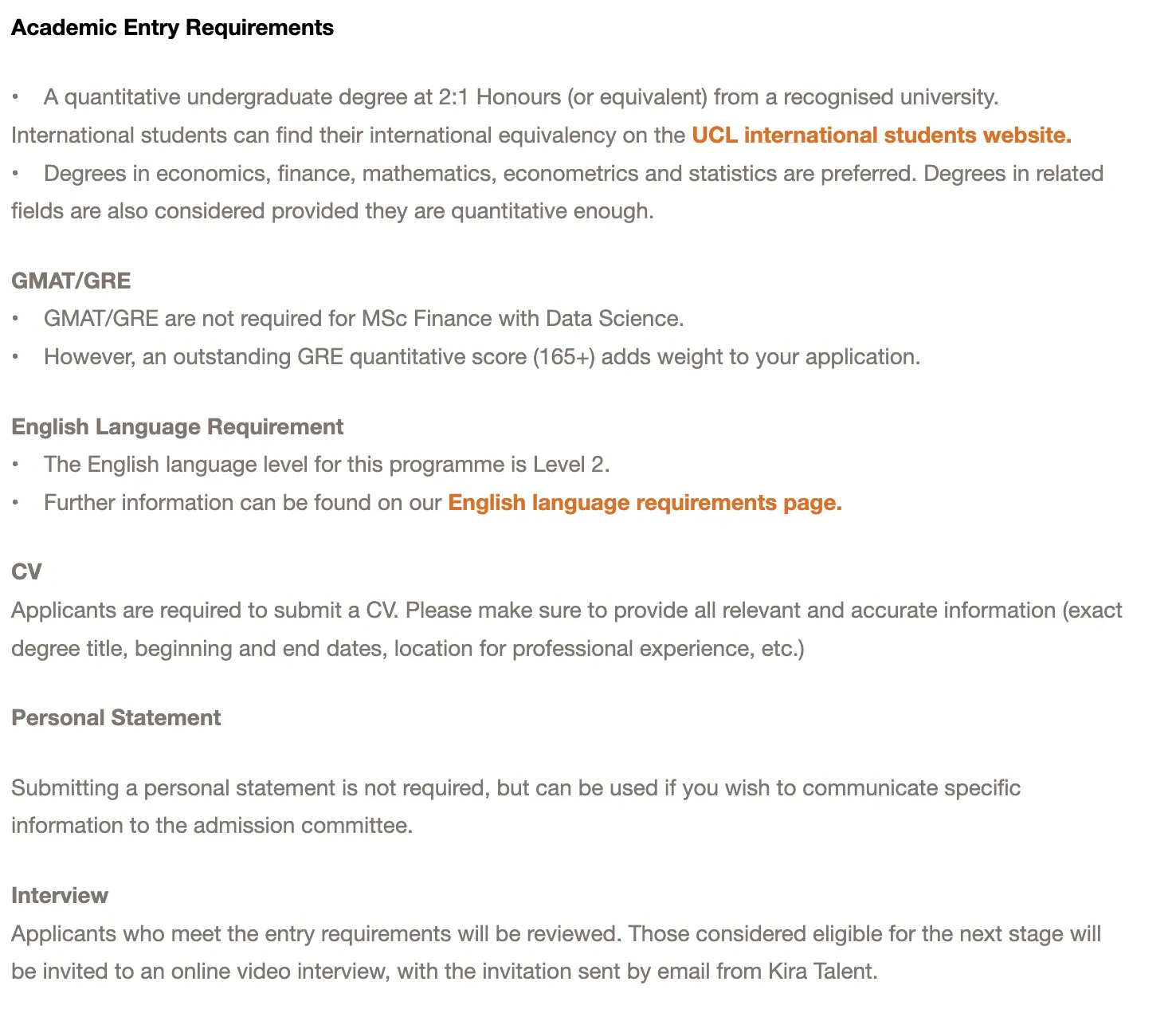 申请者需拥有本科学位,英制2:1荣誉等级以上,优先考虑经济学、金融学、数学、计量经济学和统计学专业背景的学生。其他相关量化专业背景的申请者也可考虑。