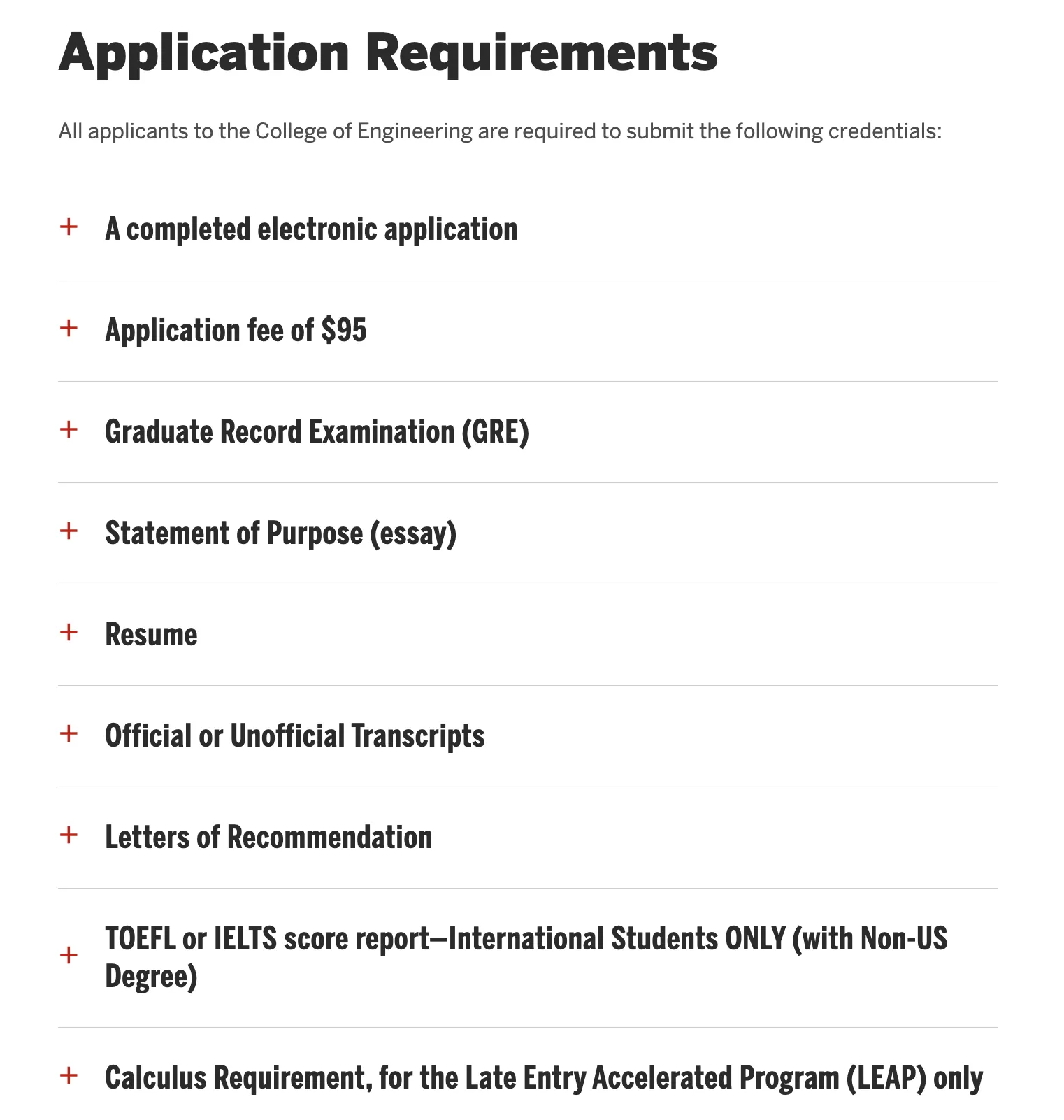 • 学术背景:本科以上学历,专业不限,但需具备数学(微积分、线性代数)、物理或生命科学基础课程。非工程背景申请者需通过LEAP补充工程课程。