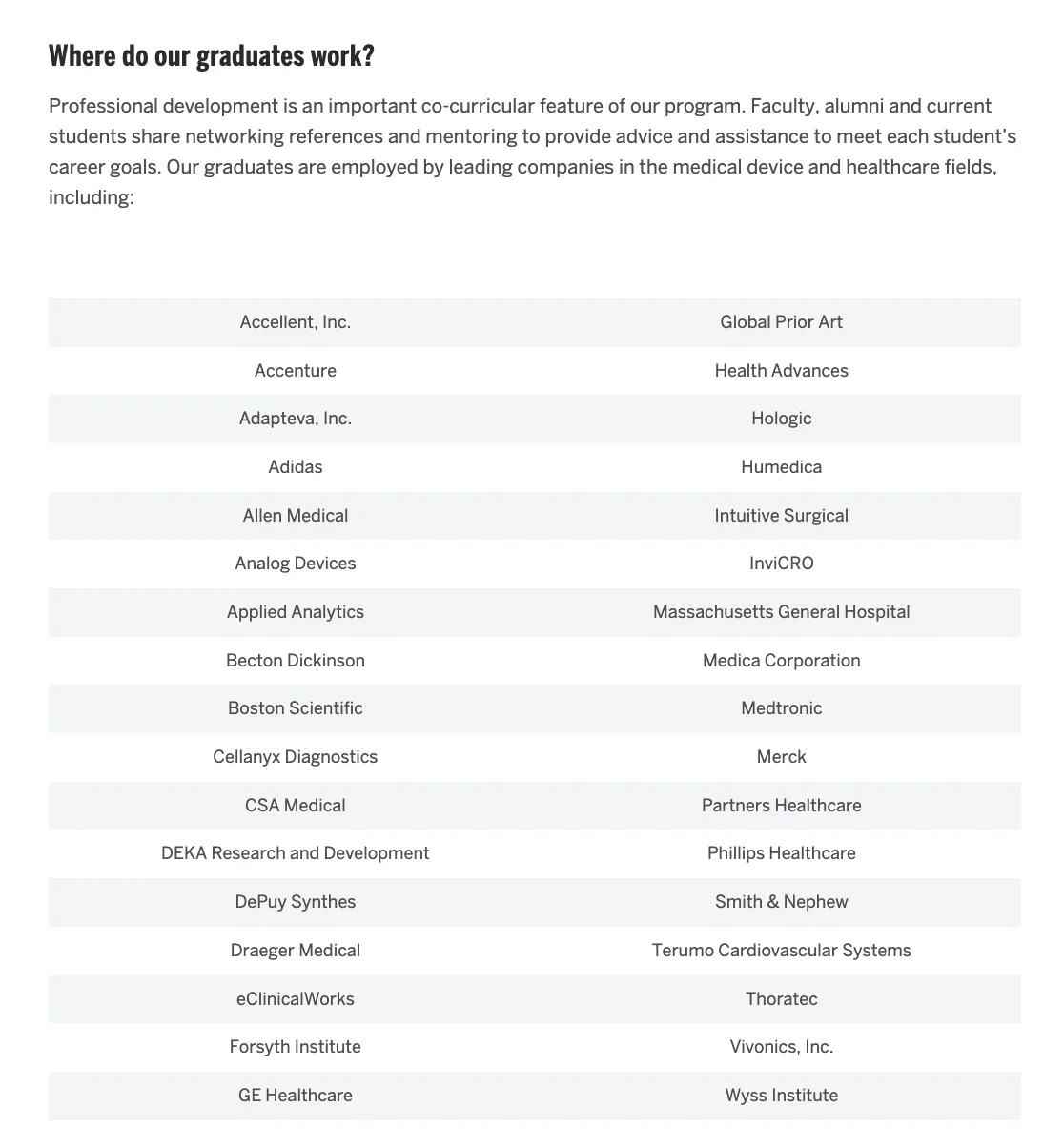 • 波士顿大学提供职业指导、校友网络及行业合作资源(如波士顿医疗创新生态圈)。
