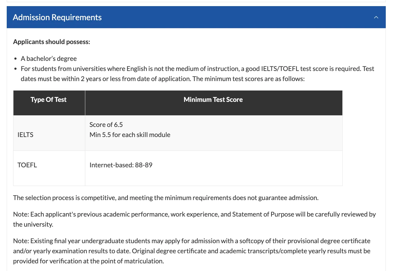 请注意,满足最低入学要求并不保证录取,建议尽早提交申请。