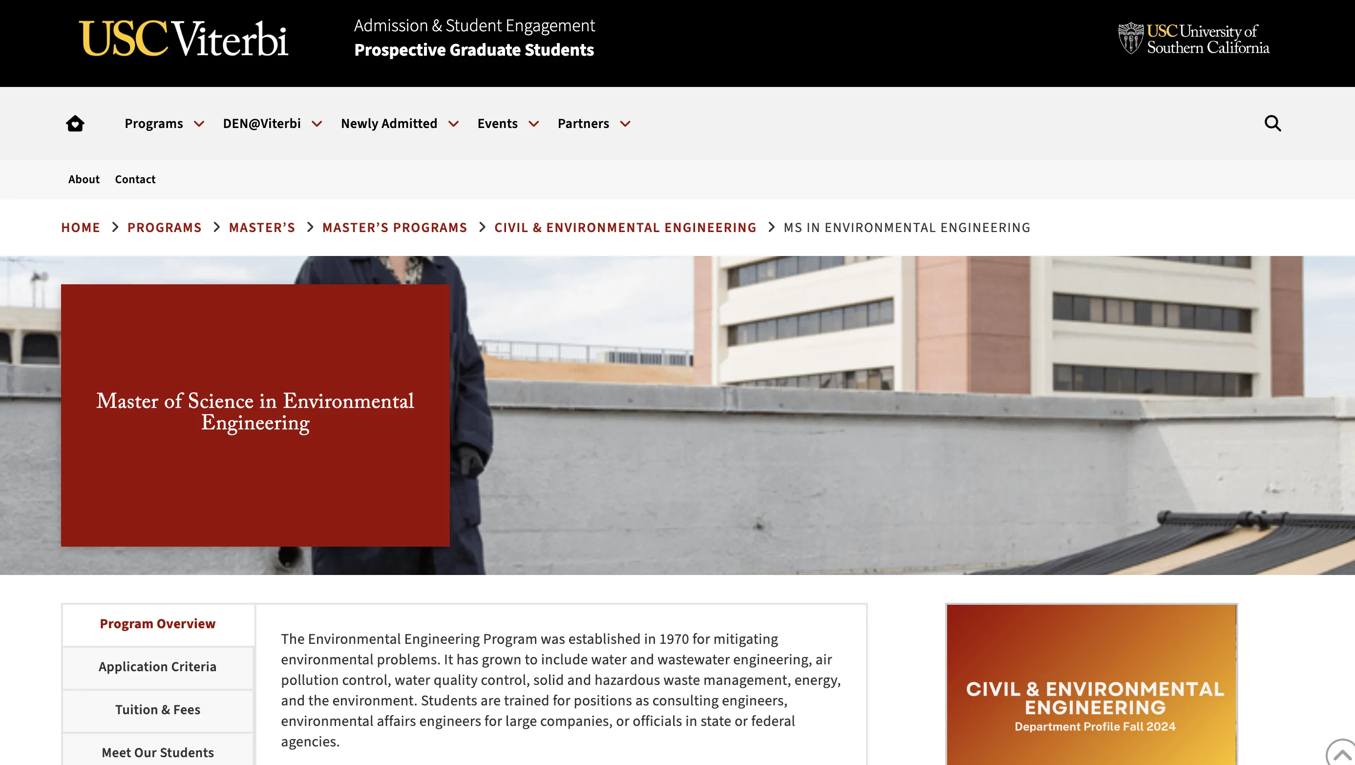 留学美国|南加州大学USC环境工程硕士MS in Environmental Engineering 项目怎么样?项目介绍|课程设置|申请要求|就业发展前景