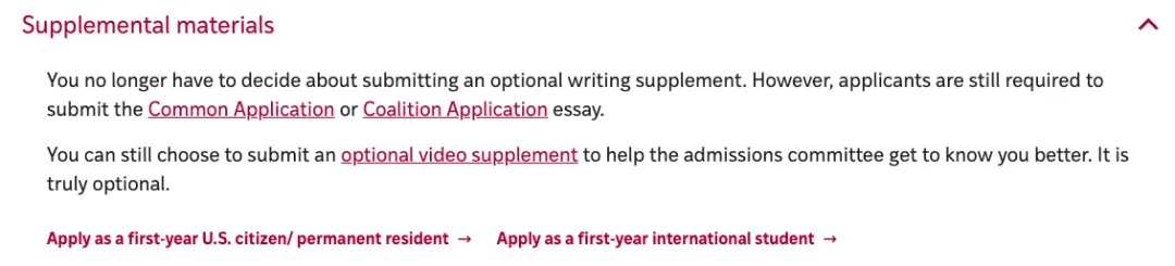 申请者不用再提交可选写作补充材料(optional writing supplement),但可以自愿选择提交一段视频补充材料,帮助招生委员更好地了解。