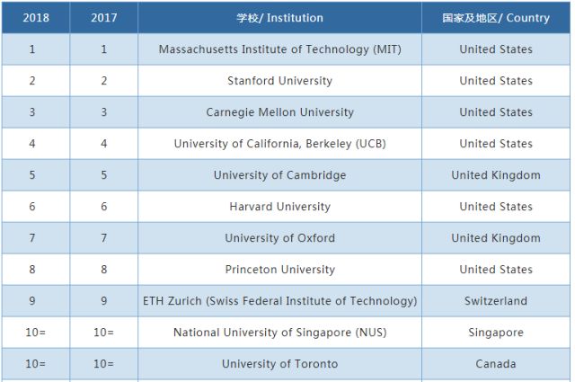 QS世界大学学科排名:表现最佳前十名