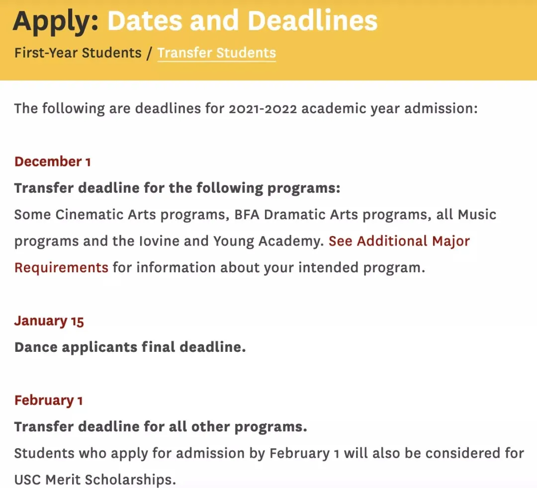很多西部大学一般一年只有一次转学,一般为秋季转学。西部截止日期一般在2月初,以USC为例,艺术类的比较早,其他项目在2月1日截止。
