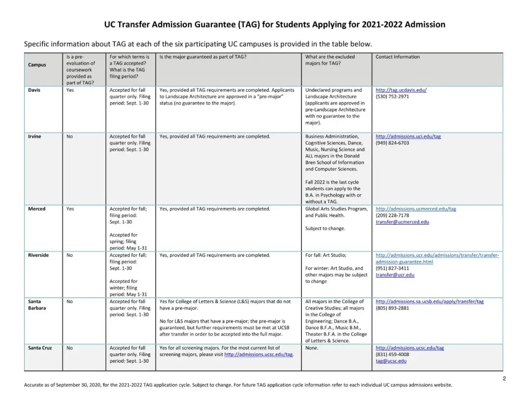 TAG (Transfer Admission Guarantee) 是加州社区大学与UC大学系统之间的转校保录协议。