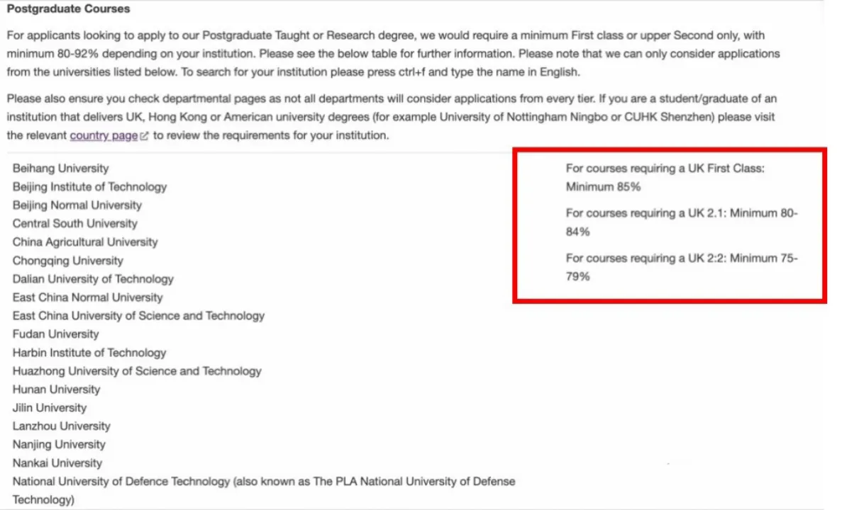 众所周知,英国的众多高校对于中国本科学生申请研究生一直是有着明确的本科梯度划分的。例如海本、985、211、双非的界定是十分清晰的,并且有的学校还有自己的“Priority List of Chinese University”,非清单上的学校是不支持申请的。