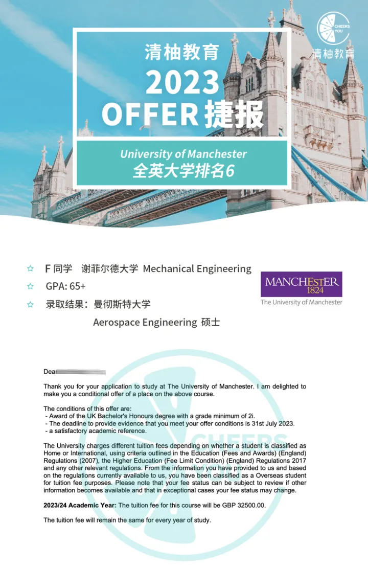 - 一等或高二等一学位,中国学生至少82-90%以上(曼大有自己的的学校list,私信我学校可以查看);