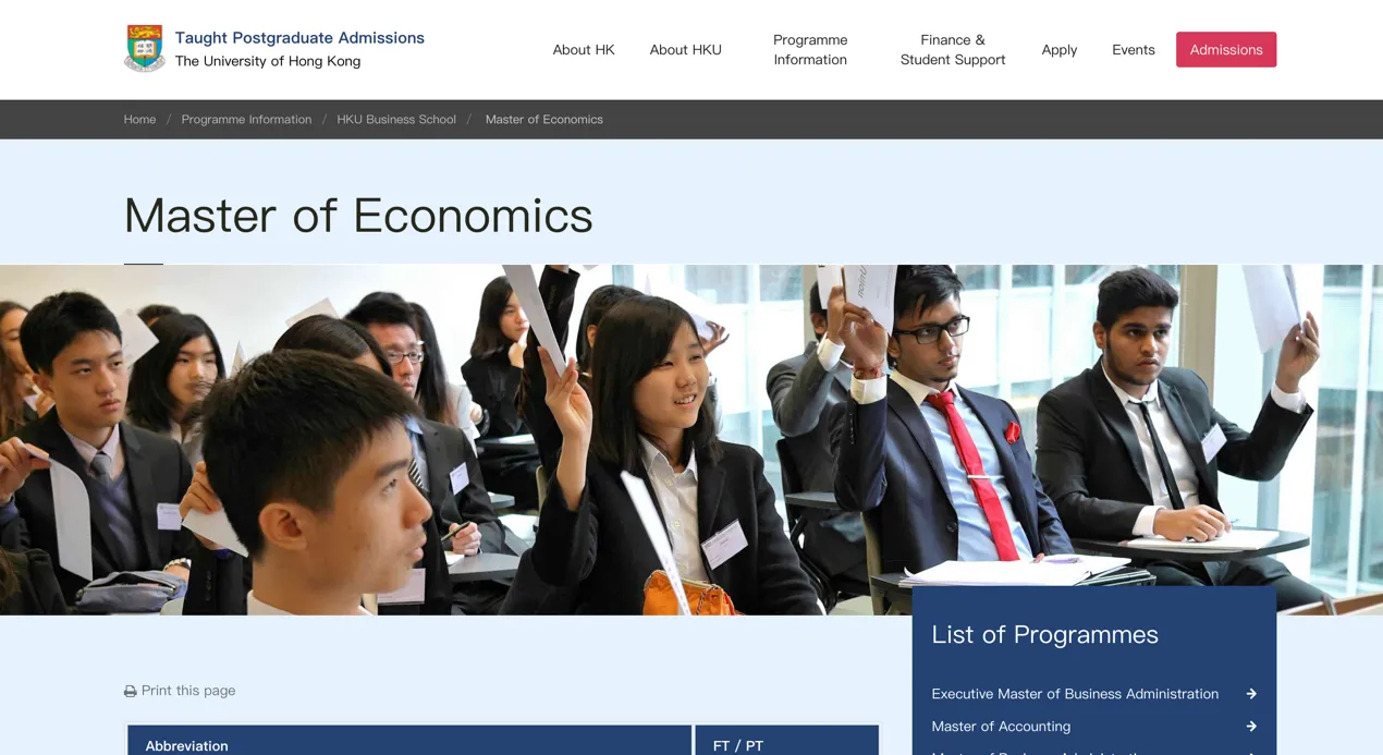 官网链接:https://admissions.hku.hk/tpg/programme/master-economics