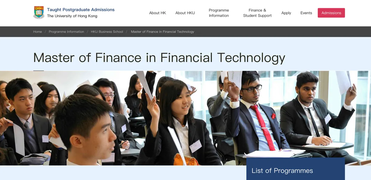 官网链接:https://admissions.hku.hk/tpg/programme/master-finance-financial-technology