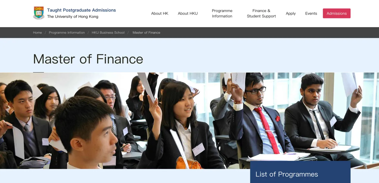 官网链接:https://admissions.hku.hk/tpg/programme/master-finance