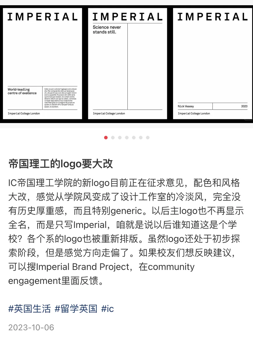 如果说之前改Logo是因为校徽上的校训有殖民色彩,那最新Logo只保存Imperial(帝国)岂不是更招骂?