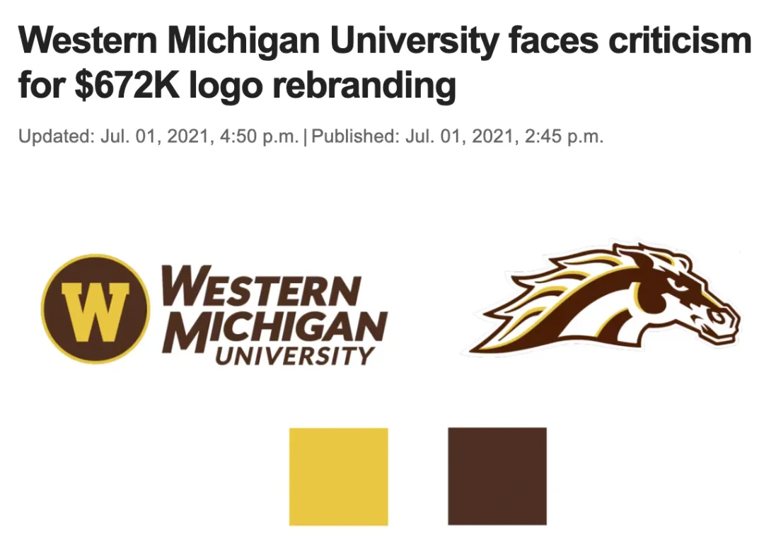 西密歇根大学改的Logo,耗时两年调研、斥资67.2万美元,成果如下👇