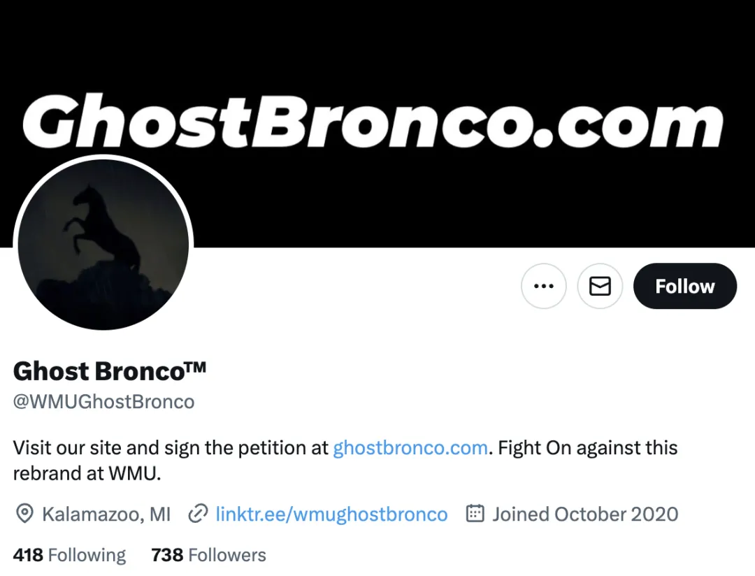 学生搞了一个名叫Ghost Bronco的账号,专门抵制新Logo😅